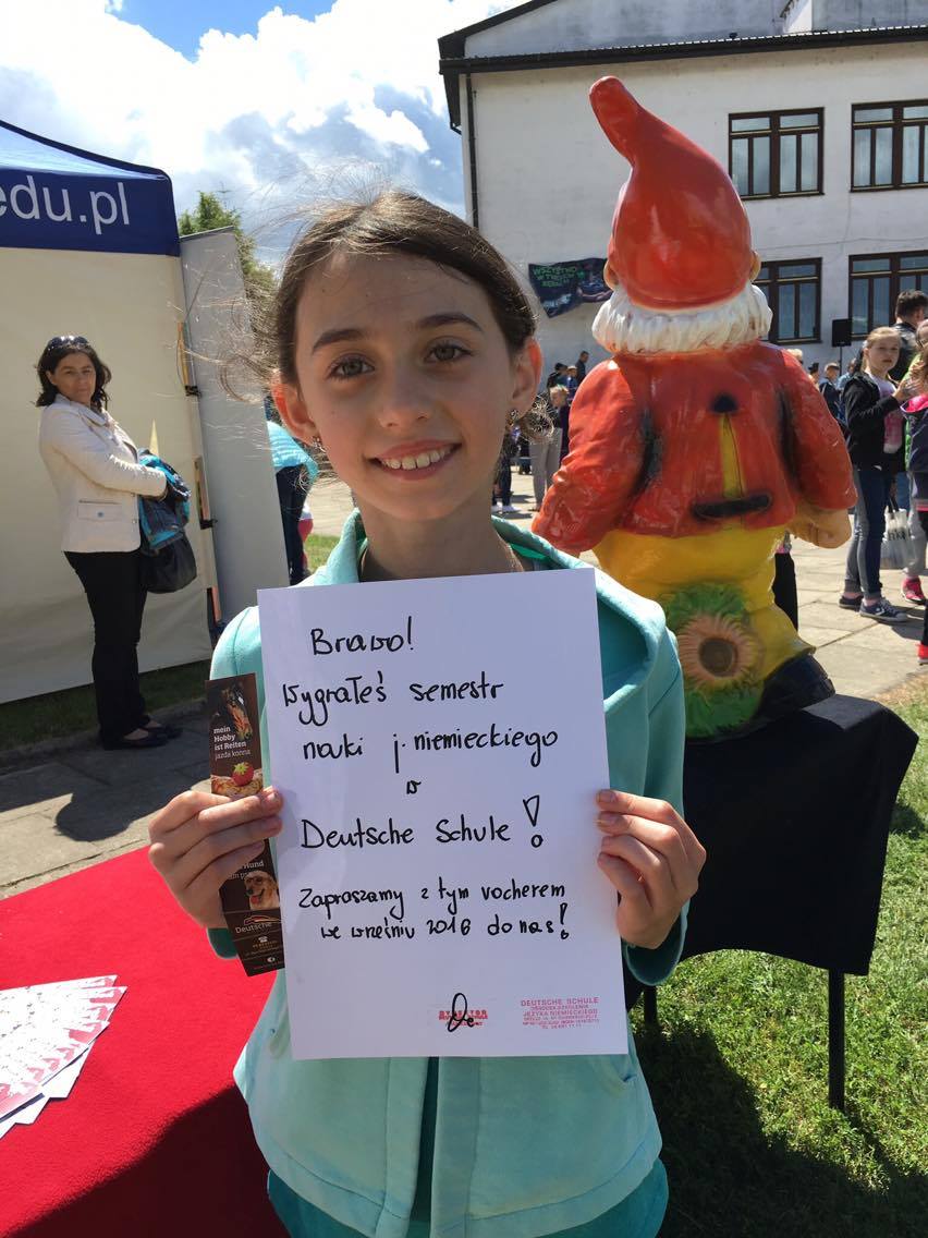 roczny kurs języka niemieckiego!!! Trzeba było się jednak wykazać nie tylko sprawnym okiem i ręką, ale też odpowiedzieć na quizowe pytania związane z Landeskunde DAChL. Impreza była przednia ! Czuliśmy się jak na dużej rodzinnej uroczystości! Dziękujemy organizatorom za zaproszenie, zaś nowych adeptów Deutsche Schule jak i tych, chcących u nas naukę kontynuować naukę języka niemieckiego od września 2016 roku:)